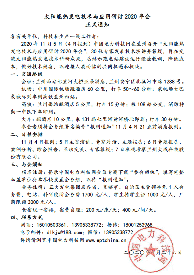 会议名称:太阳能热发电技术与应用研讨2020年会