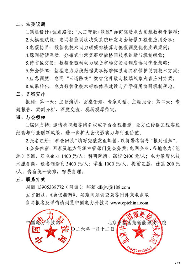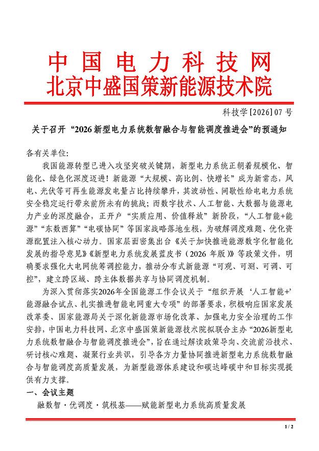 会议名称:2026新型电力系统数智融合与智能调度推进会