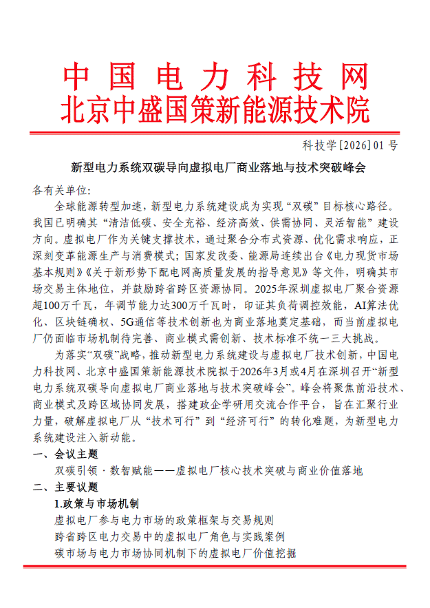 会议名称: 新型电力系统双碳导向虚拟电厂商业落地与技术突破峰会