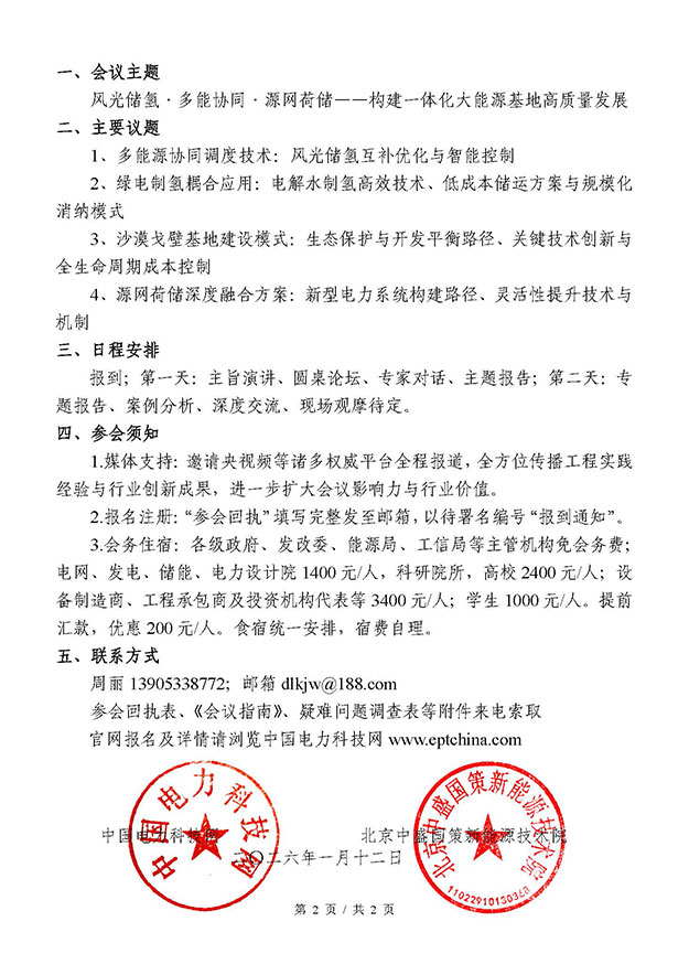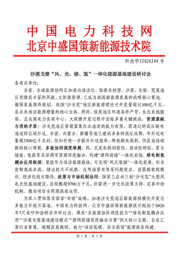 会议名称:沙漠戈壁 “风、光、储、氢” 一体化能源基地建设研讨会